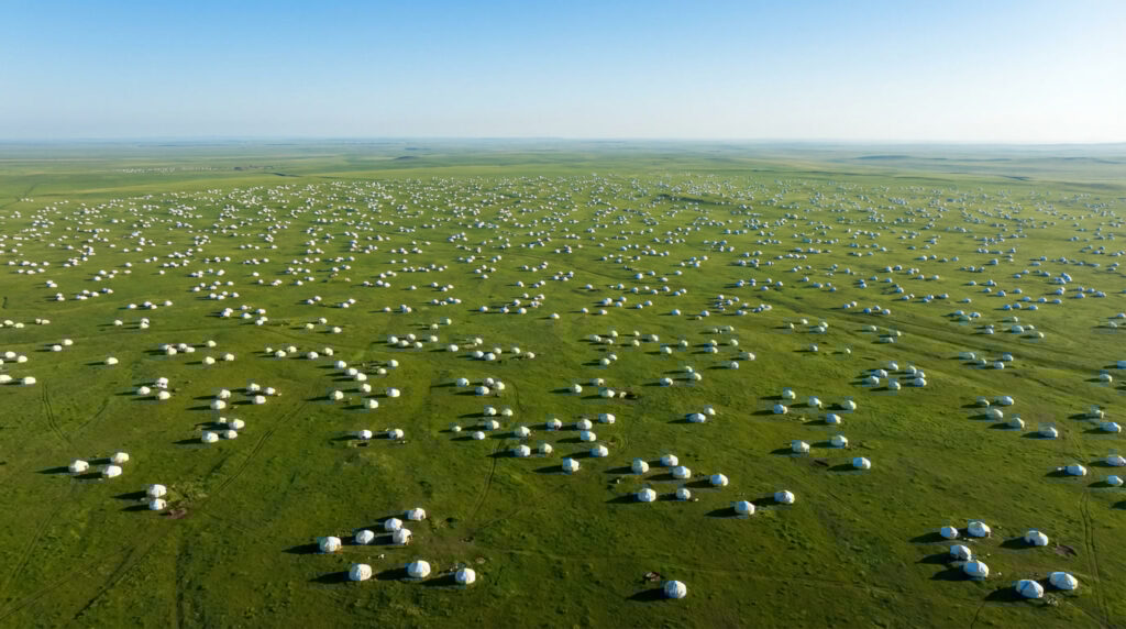 見渡す限りの地平線まで、びっしりと人で埋め尽くされた大平原。