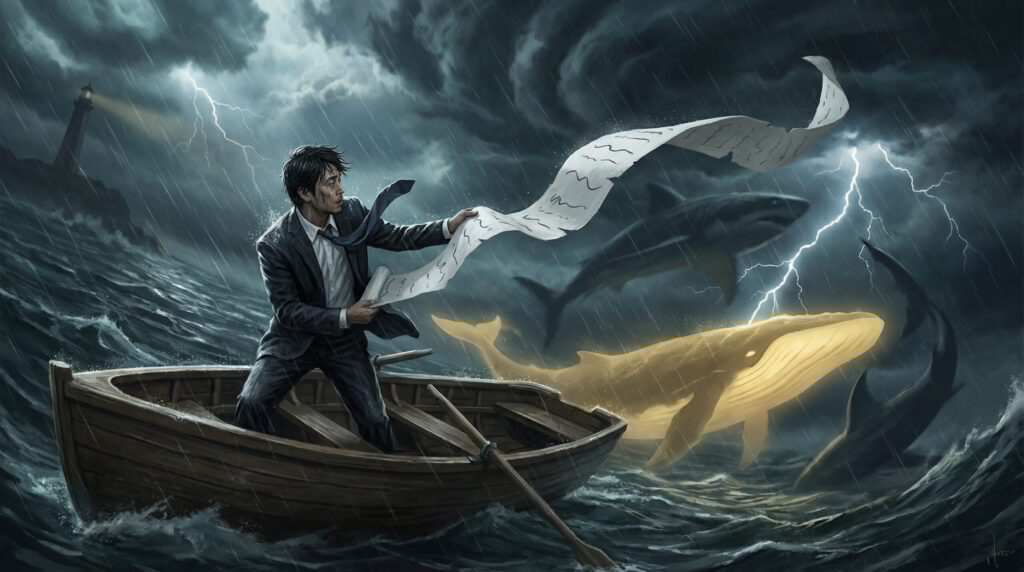 あるのは、漂流物(食べ残し)と、座礁した船(計算の合わない会計)、そして泥のように疲れた一人の漁師(あなた)だけです。