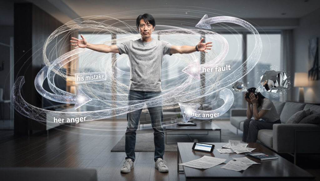 あなたが「私の言い方がきつかったのかな…」と反省し始めたら、それは彼が展開した多次元空間に飲み込まれている証拠です。